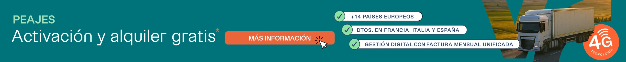 Somos ahora mismo el único proveedor que posee un dispositivo para circular por España, Francia, Portugal, e Italia para vehículos ligeros. ¡Tú también podrás beneficiarte de todas estas ventajas!