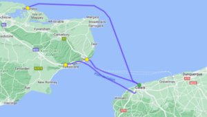 - Najpopularniejsza będzie chyba z Calais do Dover, ale warto zauważyć, że z Calais można też pojechać do Folkestone czy Sheerness. Trasy przedstawione na powyższym zdjęciu.